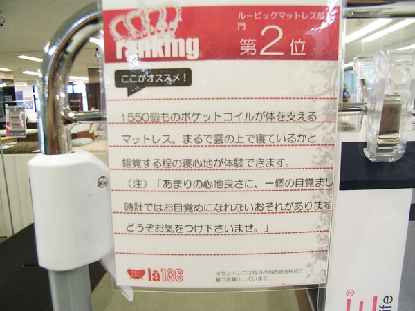 価格は5,500円きざみでマットレスランクをわかりやすく展示し、寝くらべできるので、とにかく選びやすいのが魅力です。